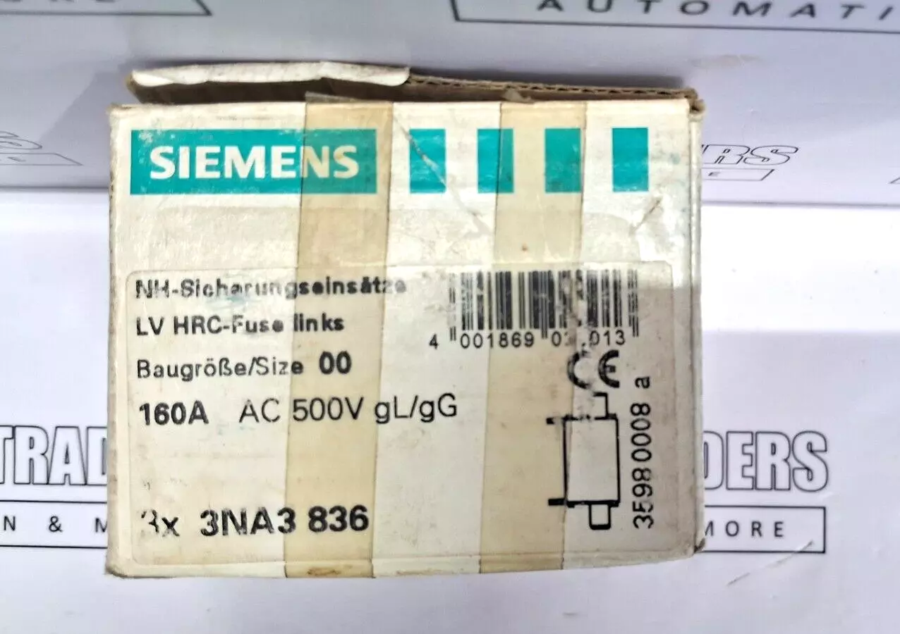Lot of 3x siemens 3na3 836 fuse link nh00-gl/gg 160a