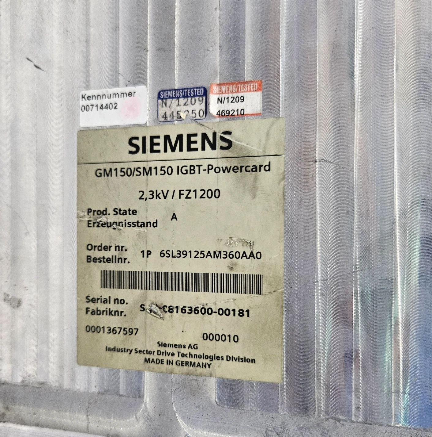 SIEMENS GM150/SM150 IGBT-POWER CARD MODULE 6SL39125AM360AA0 2.3KV/FZ1200