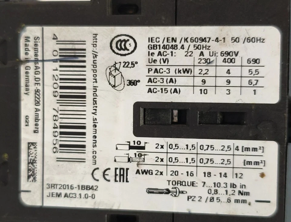 SIEMENS SIRIUS 3RT2016-1BB42 POWER CONTACTOR LOT OF 2X